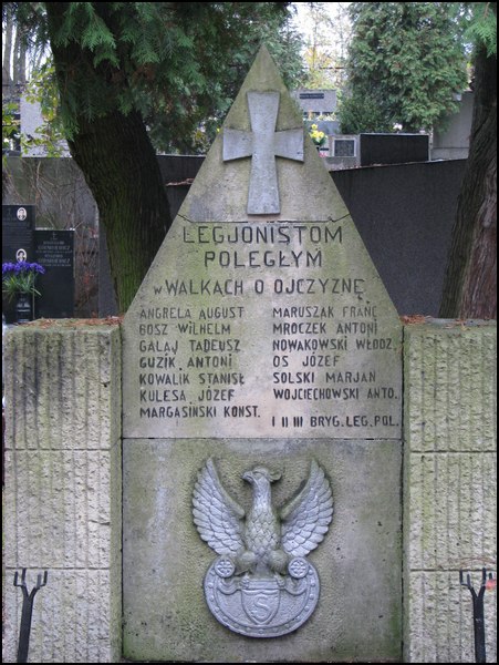 1 - Plan cmentarza Podgórskiego; pomiędzy kwaterą VIII a pasem 2 znajduje się pomnik legionistów 1, 2 i 3 Brygady z I wojny światowej; kwatera XI - głaz upamiętniający żołnierzy austriackich pochowanych w latach 1914 - 1918